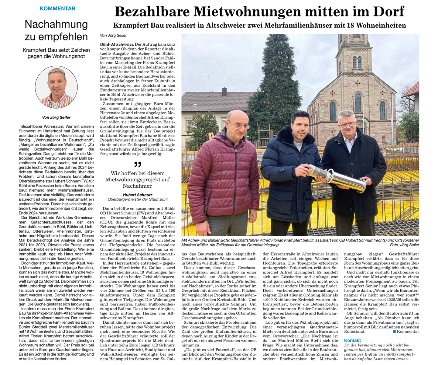 Johannes und Alfred Krampfert werden zu geschäftsführenden Gesellschaftern der Krampfert Wohnbau GmbH.